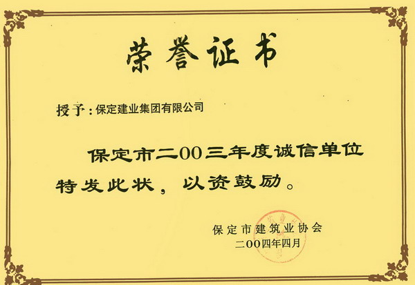 03年度省先進建筑施工企業(yè)證書