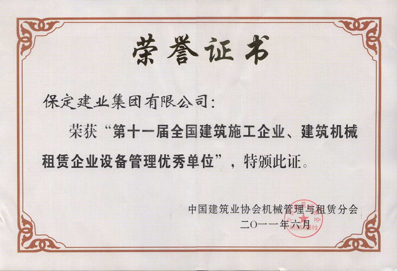2011全國(guó)十一屆機(jī)械租賃優(yōu)秀企...