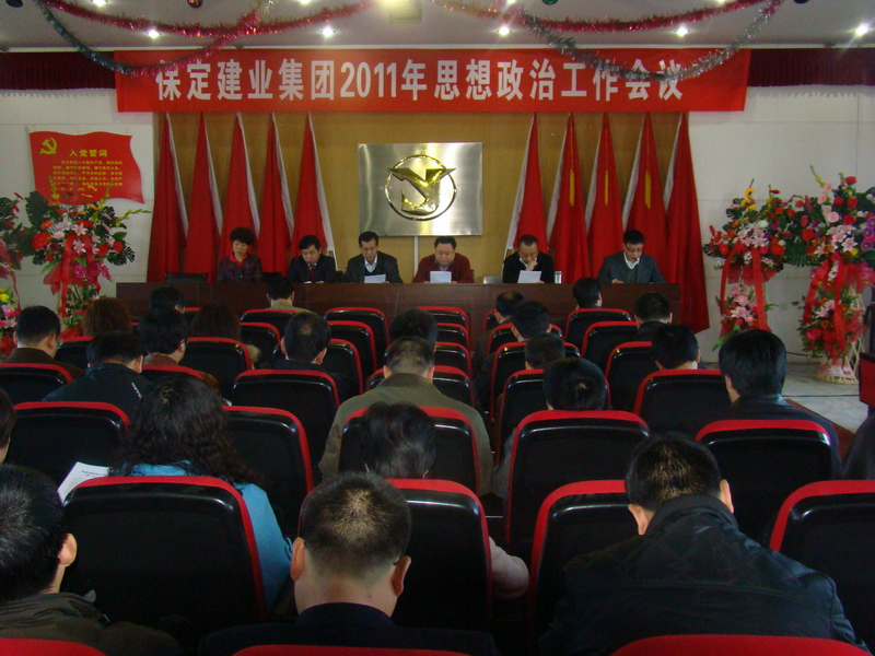 2011年3月8日,保定建業(yè)集團(tuán)有限公司2011年思想政治工作會(huì)議在莊嚴(yán)的國(guó)歌聲中拉開(kāi)了序幕,會(huì)議由黨委辦公室主任馬亞軍主持,集團(tuán)各公司黨、政、工、團(tuán)、婦、武裝、保衛(wèi)負(fù)責(zé)人參加會(huì)議。